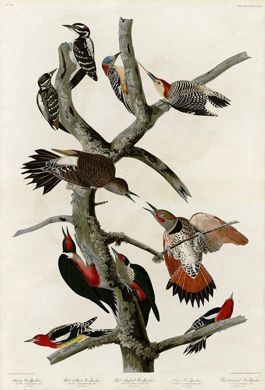 Woodpeckers White Modern Wood Framed Art Print with Double Matting by Audubon, John James