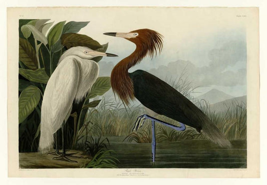 Louisiana Heron White Modern Wood Framed Art Print with Double Matting by Audubon, John James