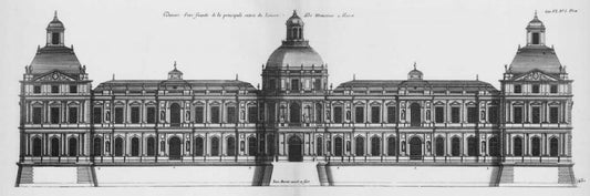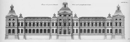 Louvre, Elevation of the Principal Facade White Modern Wood Framed Art Print with Double Matting by Blondel, Jacques Francois