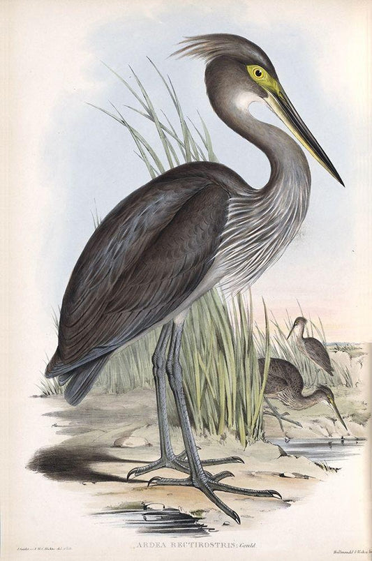 Grey Billed Heron White Modern Wood Framed Art Print with Double Matting by Gould, John