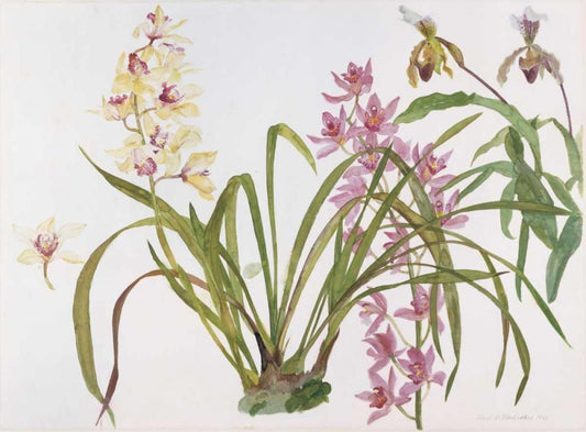 Orchids, Paphiopedilum and Cymbidium White Modern Wood Framed Art Print with Double Matting by Blackadder, Elizabeth