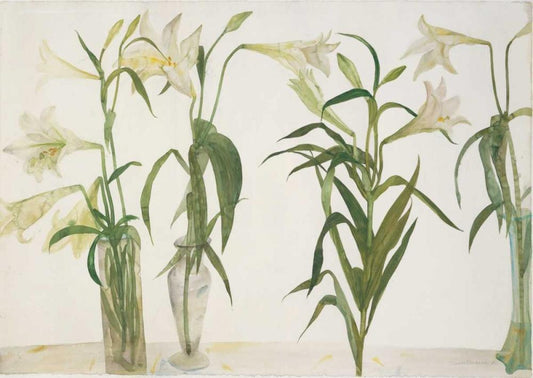 Green and White Lilies White Modern Wood Framed Art Print with Double Matting by Blackadder, Elizabeth