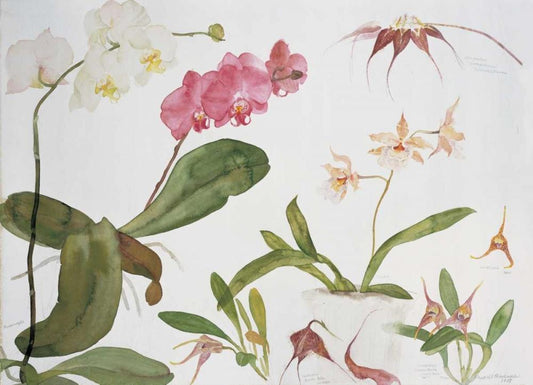 Orchid Studies White Modern Wood Framed Art Print with Double Matting by Blackadder, Elizabeth