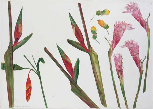 Heliconia, Passion Fruit and Ginger White Modern Wood Framed Art Print with Double Matting by Blackadder, Elizabeth