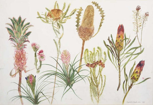 Banksia, Tillandsia, Proteus and Pineapple White Modern Wood Framed Art Print with Double Matting by Blackadder, Elizabeth