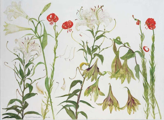 Lilies, Auratum, Nepalense, and Chalcedonicum White Modern Wood Framed Art Print with Double Matting by Blackadder, Elizabeth