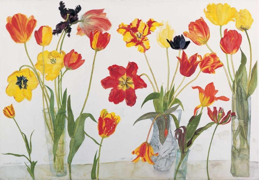 Red and Yellow Tulips White Modern Wood Framed Art Print with Double Matting by Blackadder, Elizabeth