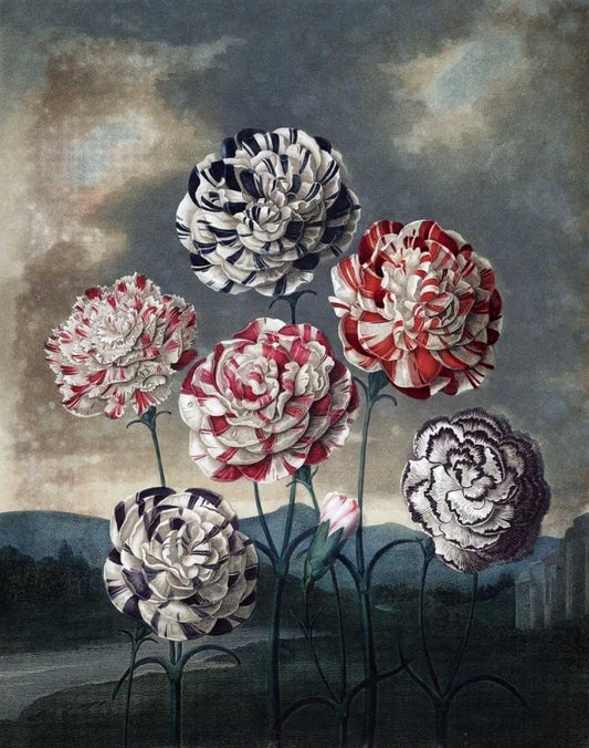Group of Carnations White Modern Wood Framed Art Print with Double Matting by Thornton, Dr R