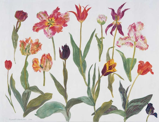 Tulips White Modern Wood Framed Art Print with Double Matting by Blackadder, Elizabeth