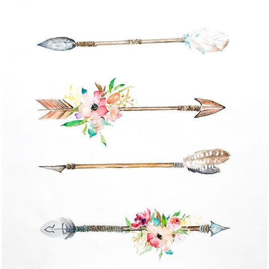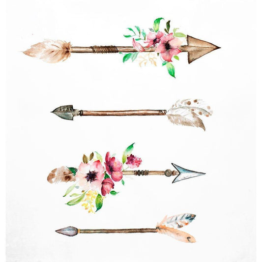 ARROWHEADS AND FLOWERS White Modern Wood Framed Art Print by Atelier B Art Studio