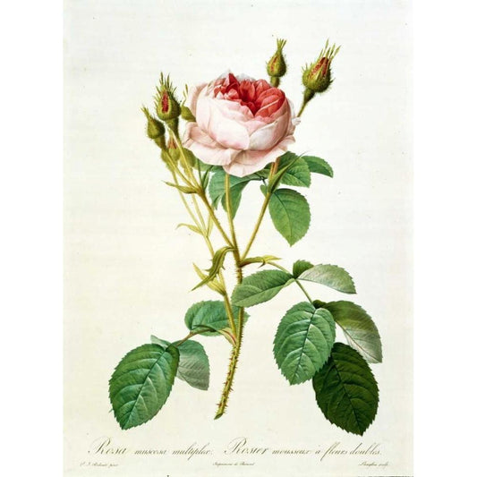 Rosa, Centifolia Mutabilis White Modern Wood Framed Art Print by Redouté, Pierre-Joseph