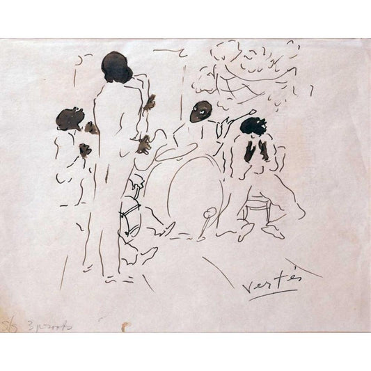 Dancers White Modern Wood Framed Art Print by Vertes, Marcel