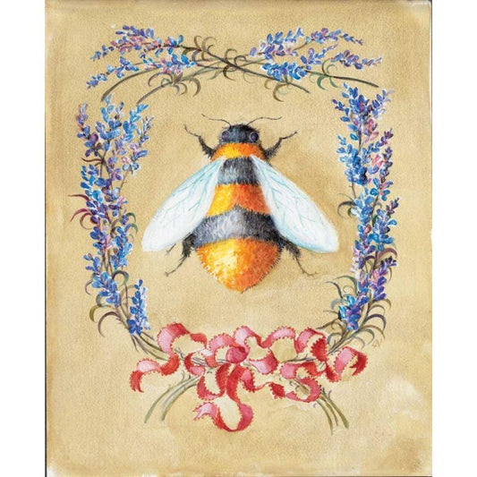 Honey Bee and Lavender White Modern Wood Framed Art Print by Neil, Lucy