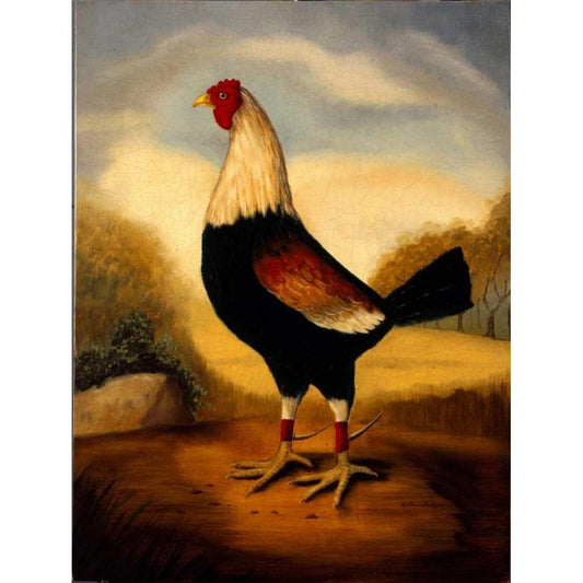 First Fighting Cock White Modern Wood Framed Art Print by Churchill, Alexandra
