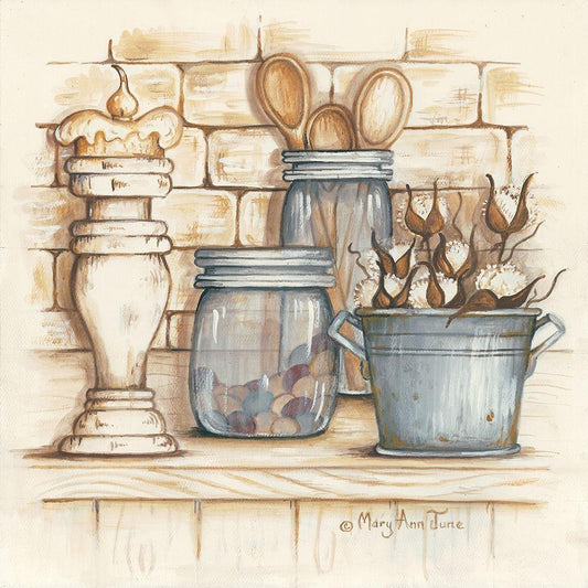 Jars and Wooden Spoons White Modern Wood Framed Art Print by June, Mary Ann