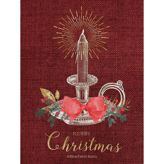 Burlap Vintage Christmas Tall Candlestick White Modern Wood Framed Art Print by Bluebird Barn