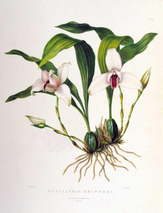 Orchid, Maxillaria Skinneri White Modern Wood Framed Art Print with Double Matting by Withers, Augusta