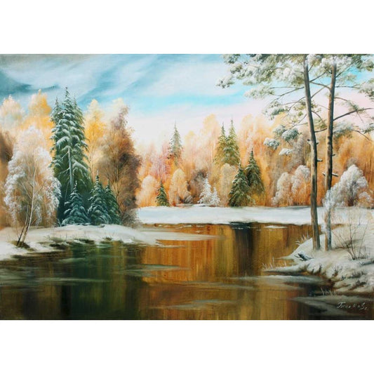 Oil forestlake II White Modern Wood Framed Art Print by Natalia, Gusak