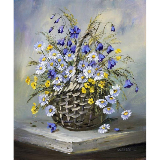 Colourful basket White Modern Wood Framed Art Print by Schottler, Katharina