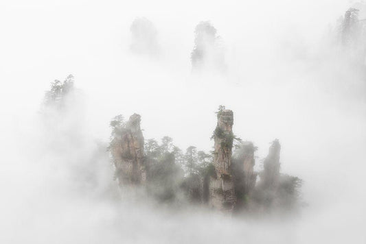 Cloud-Shrouded Zhangjiajie White Modern Wood Framed Art Print with Double Matting by Zhu, Hua