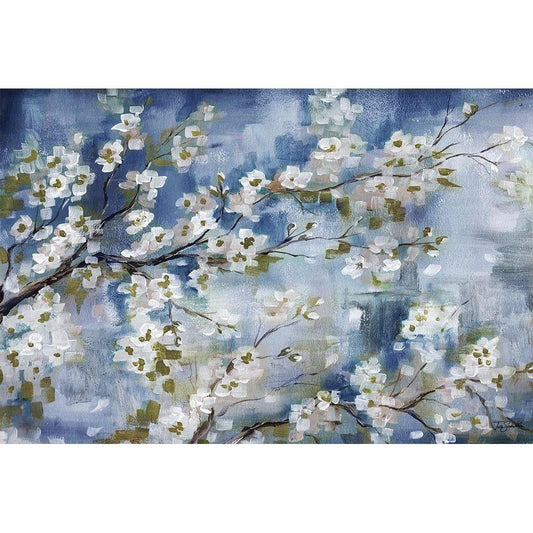Cherry Blossoms Branch Blue and White landscape White Modern Wood Framed Art Print by Tre Sorelle Studios