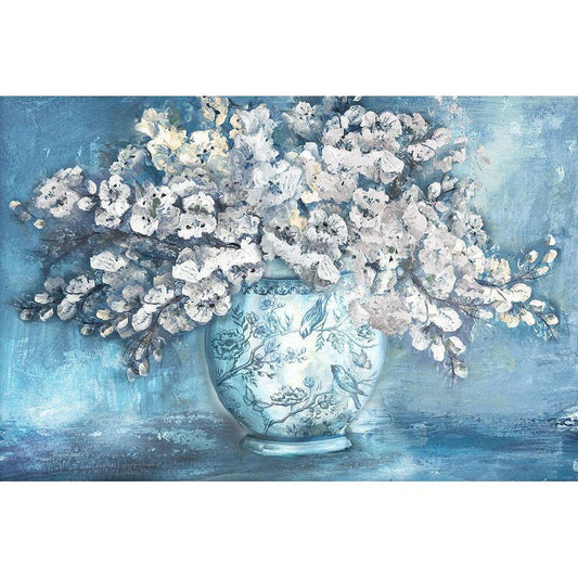 Indigo and White Blooms in Mason Jar White Modern Wood Framed Art Print by Tre Sorelle Studios
