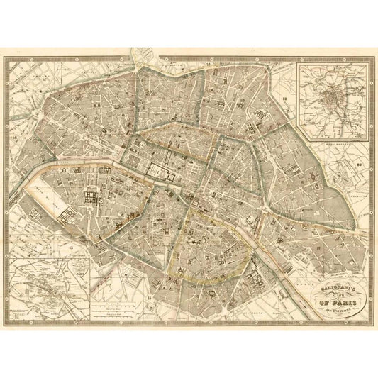 Plan of Paris and Environs, 1865 White Modern Wood Framed Art Print by Galignani, Antonio