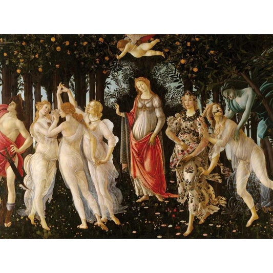Primavera White Modern Wood Framed Art Print by Botticelli, Sandro