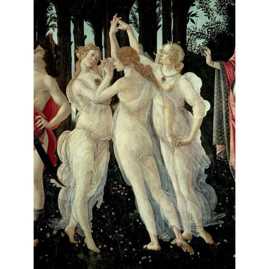 Le tre Grazie (detail of Primavera) White Modern Wood Framed Art Print by Botticelli, Sandro
