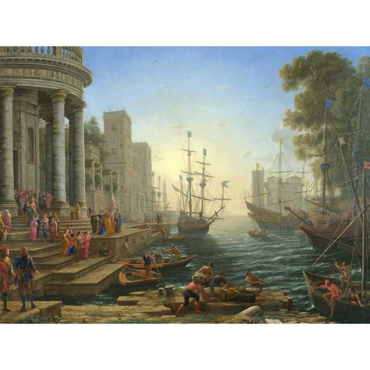 Seaport with the embarkation of the Queen of Sheba White Modern Wood Framed Art Print by Gellee, Claude
