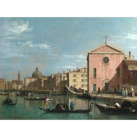 The Grand Canal facing Santa Croce, Venice White Modern Wood Framed Art Print by Follower of Canaletto