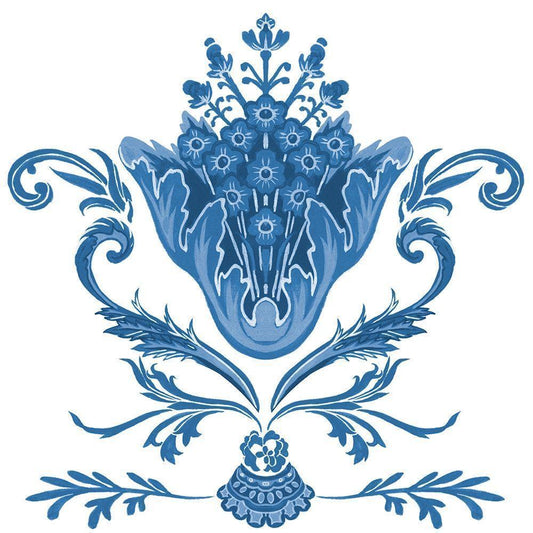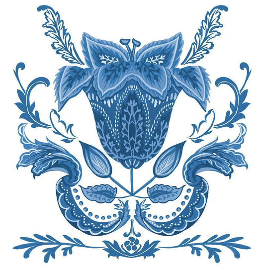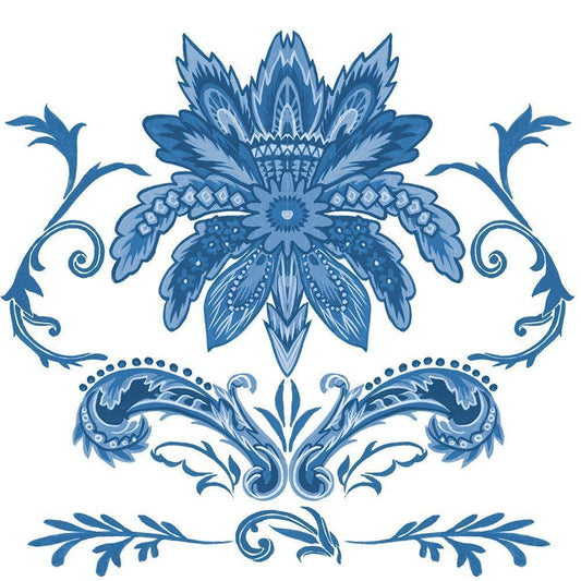 Indigo Chintz I White Modern Wood Framed Art Print by Wang, Melissa