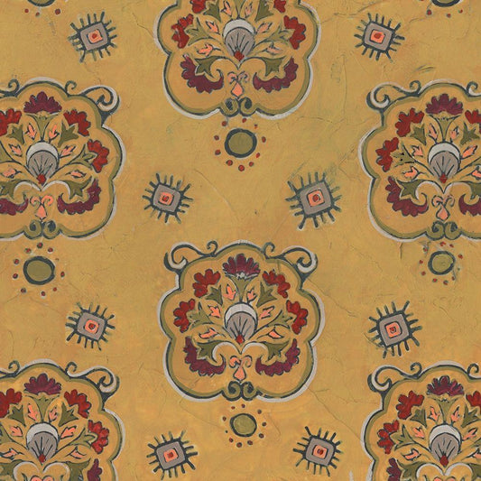 Ochre Tapestry VII White Modern Wood Framed Art Print by Vess, June Erica