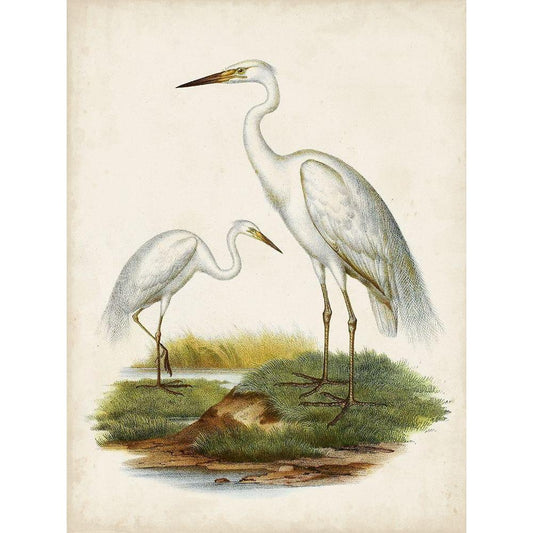 Antique Waterbirds V White Modern Wood Framed Art Print by Unknown
