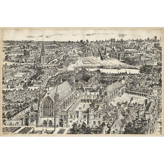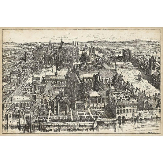 Birds Eye View of London - Westminster White Modern Wood Framed Art Print by Unknown