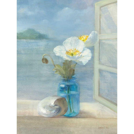 Coastal Florals I White Modern Wood Framed Art Print by Nai, Danhui