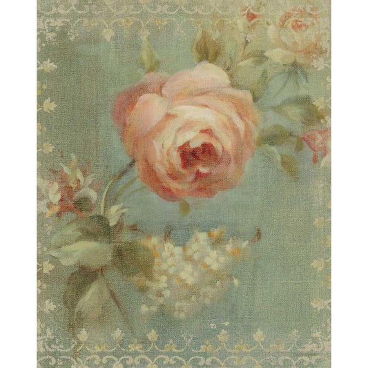 Rose on Sage White Modern Wood Framed Art Print by Nai, Danhui