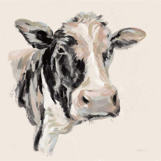 Expressionistic Cow I Neutral White Modern Wood Framed Art Print by Vassileva, Silvia