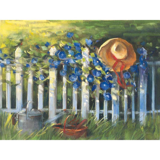 Morning Glories on the Fence White Modern Wood Framed Art Print by Rowan, Carol