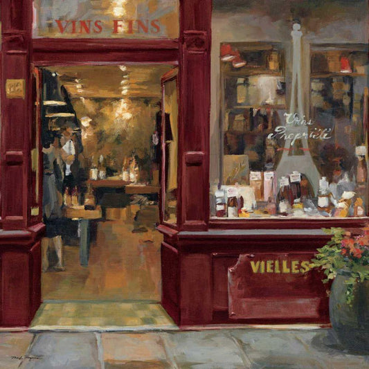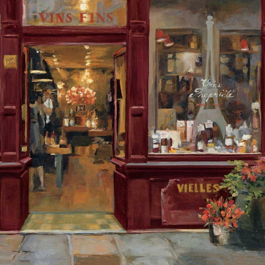Parisian Wine Shop Red Crop White Modern Wood Framed Art Print by Hageman, Marilyn