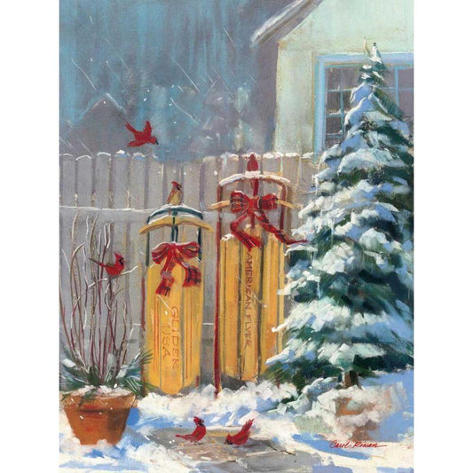 December Sleds White Modern Wood Framed Art Print by Rowan, Carol