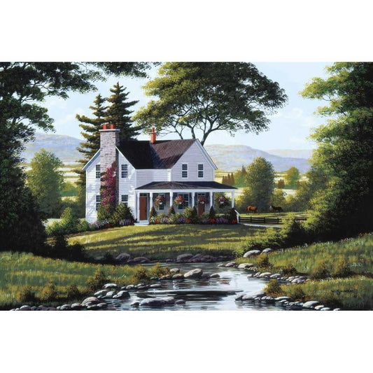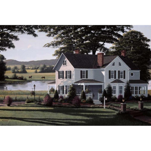 Along the Riverbank White Modern Wood Framed Art Print by Saunders, Bill