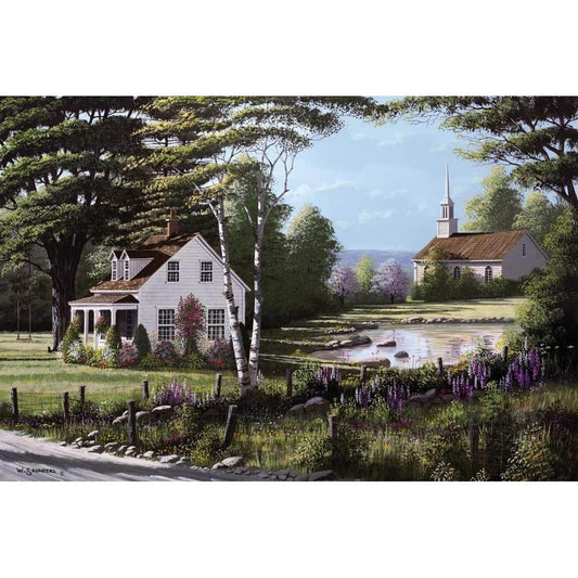 The Country Inn White Modern Wood Framed Art Print by Saunders, Bill