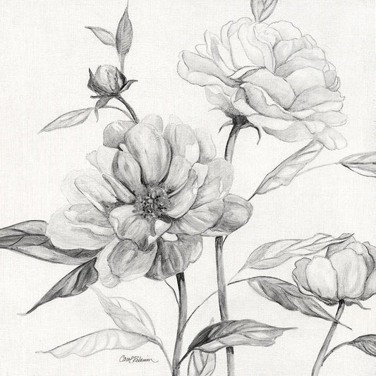 Linen Peony Sketch II White Modern Wood Framed Art Print by Robinson, Carol