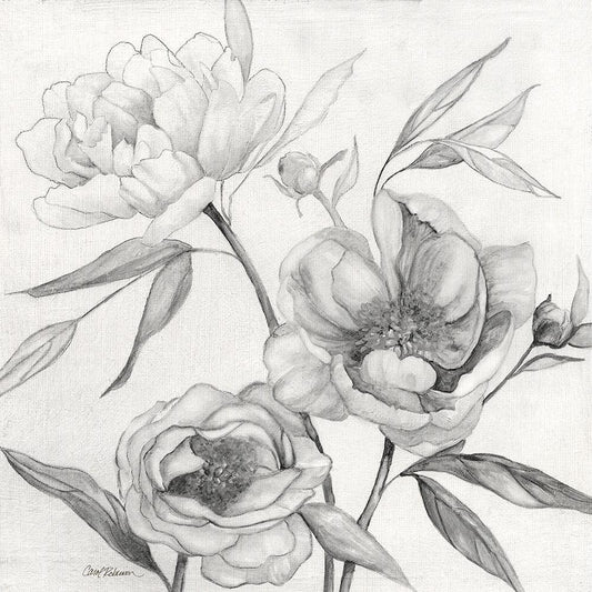 Linen Peony Sketch I White Modern Wood Framed Art Print by Robinson, Carol