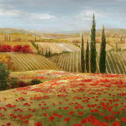 Tuscan Poppies I White Modern Wood Framed Art Print by Nan