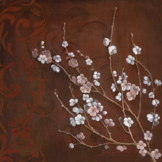 Cherry Blossoms on Cinnabar I White Modern Wood Framed Art Print by Tava Studios