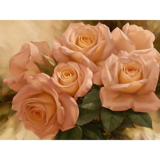 Peach Rose Splendor I White Modern Wood Framed Art Print by Levashov, Igor