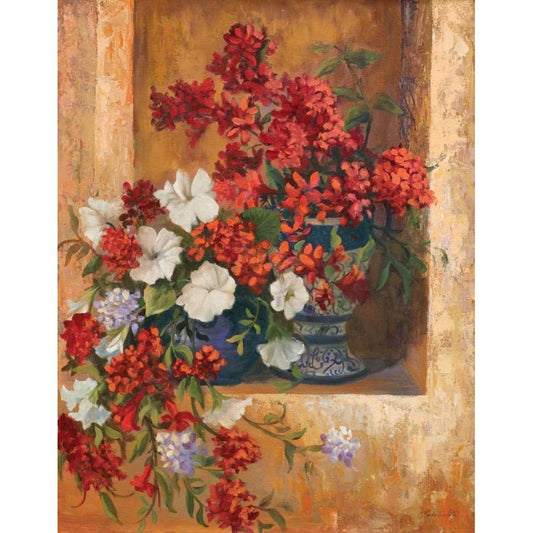 Flores de Espana I White Modern Wood Framed Art Print by Wacaster, Linda