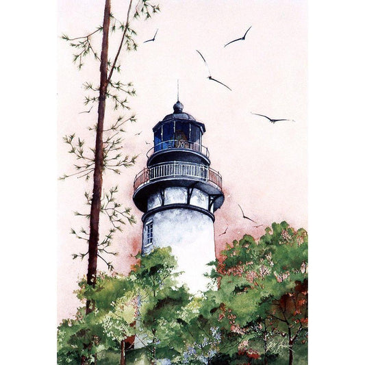 Amelia Island Lighthouse-2 White Modern Wood Framed Art Print by Rizzo, Gene
